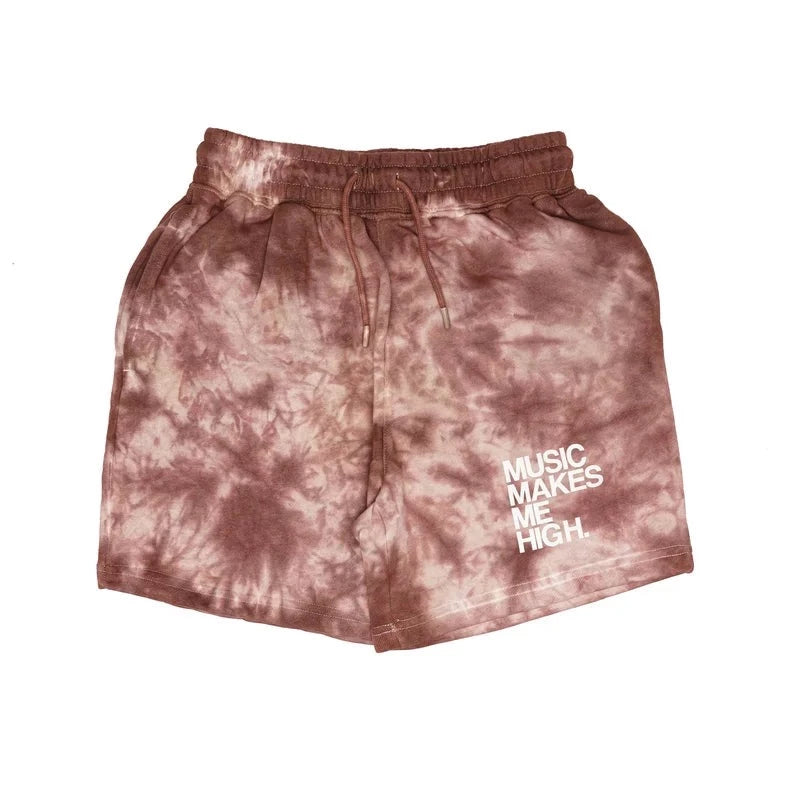 MUSIC MAKES ME HIGH *FRENCH TERRY SHORTS* BROWN TIE DYE