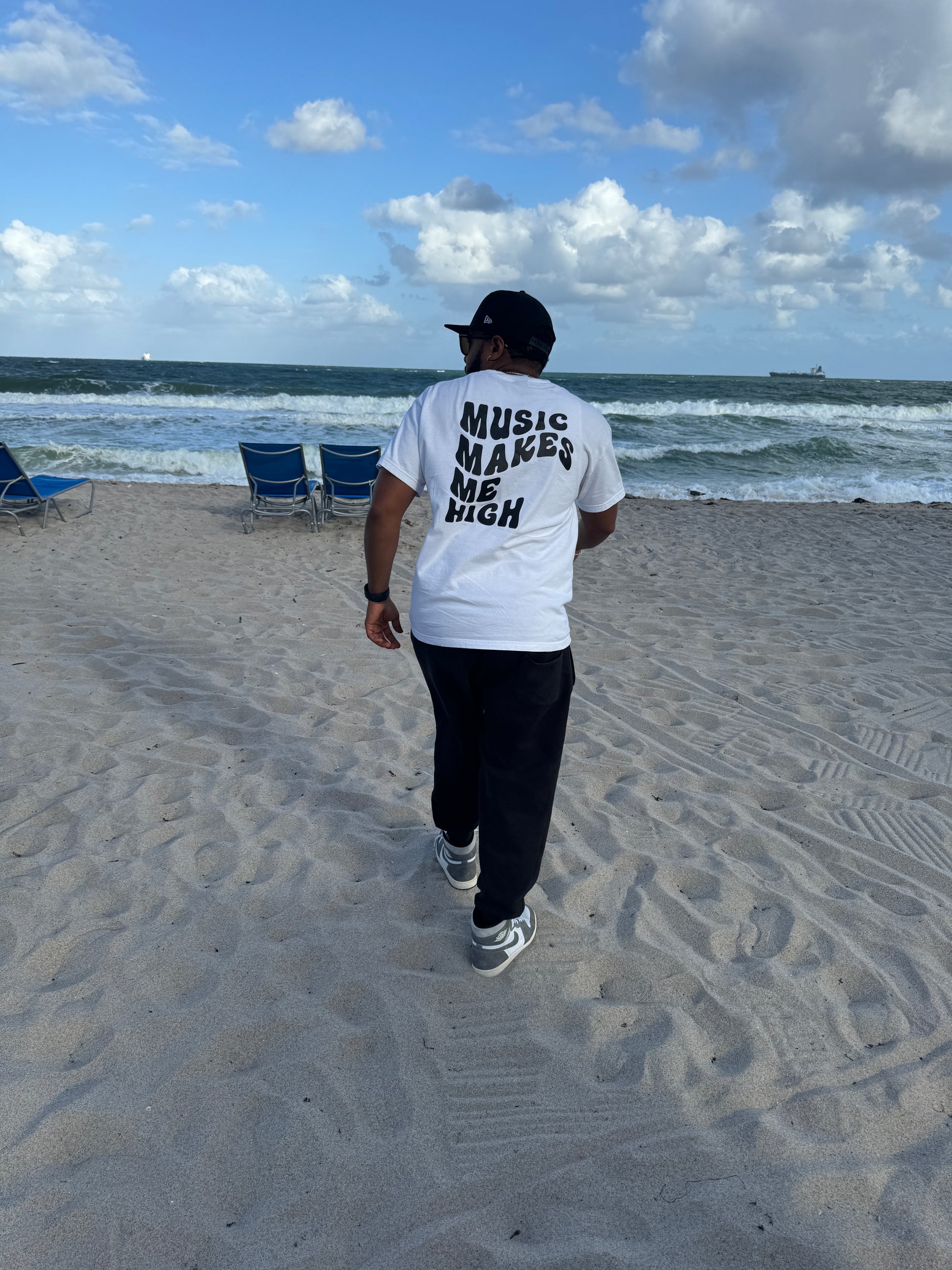 MUSIC MAKES ME HIGH *WAVY T-SHIRT* WHITE/BLACK